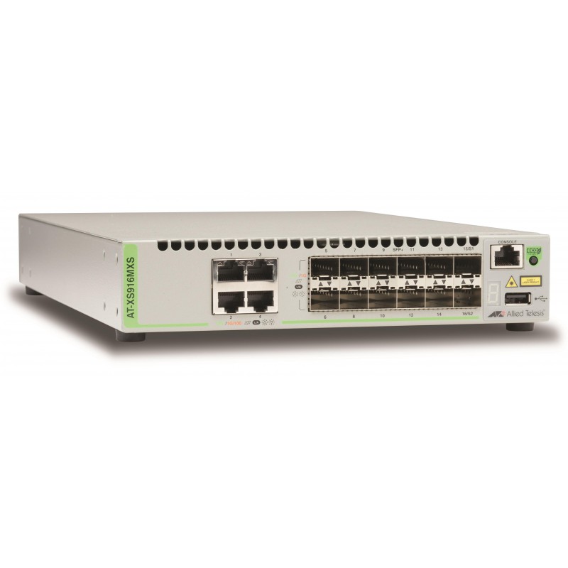 The Allied Telesis XS916MXS features 12 x SFP+, and 4 x 100/1000/10GBASE-T ports, in a cost-effective compact package.