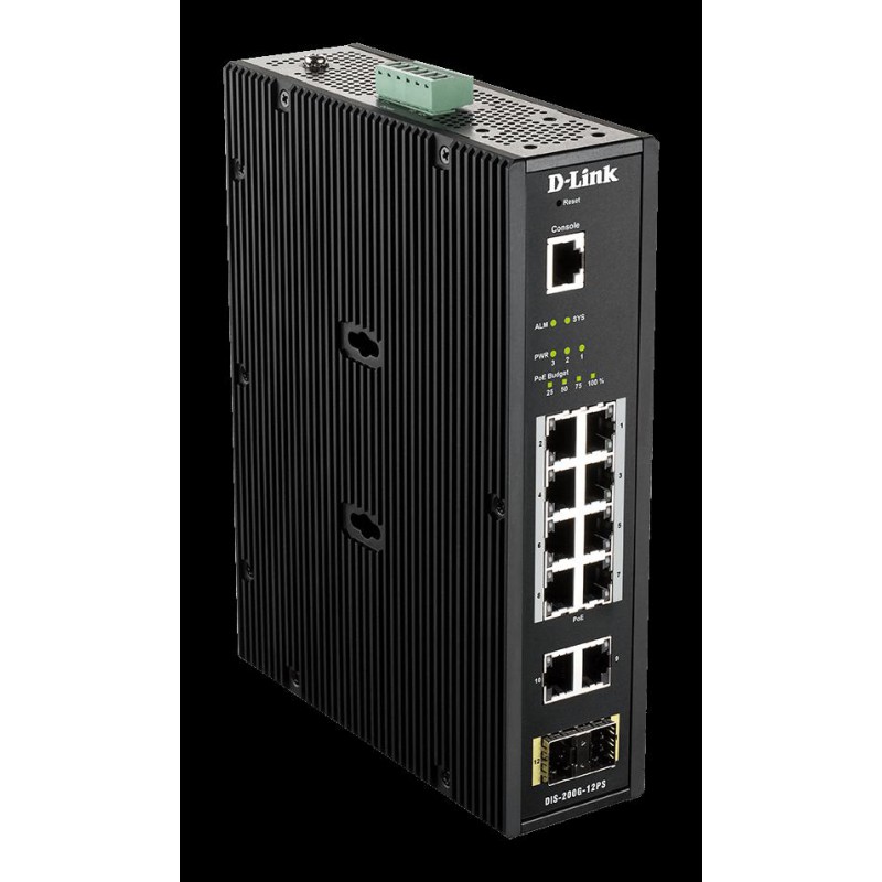 12portový L2 průmyslový inteligentní spravovaný přepínač s 10 porty 1GBaseT(X) (8 portů PoE 240W) a 2 porty SFP
