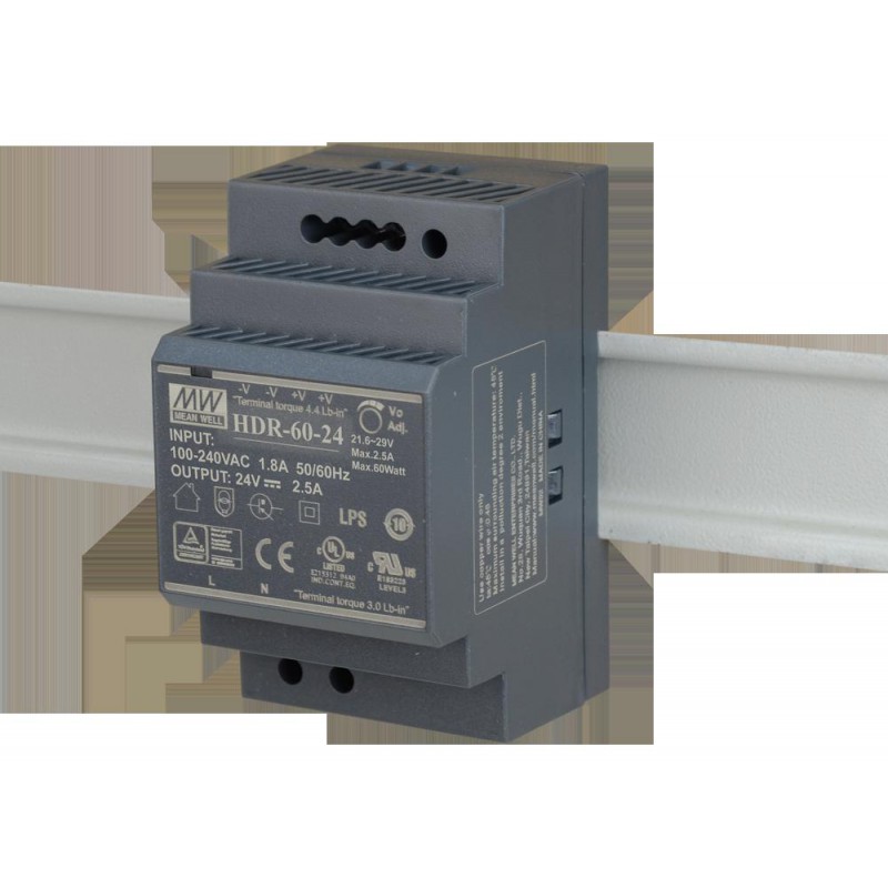 D-Link DIS-H60-24 je 60W 24VDC průmyslový pulzní napájecí zdroj s montáží na DIN lištu, s jističovým profilem.