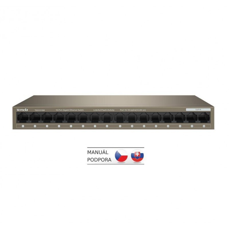 Gigabitový 16ti portový switch TEG1016M výrobce Tenda Technology, plně podporuje standardy IEEE 802.3, 802.3u, 802.3x, 802.3ab a je určený pro použití ve firmách i domácnostech.