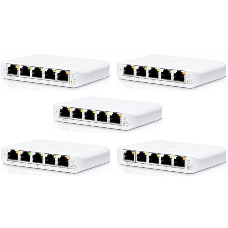 USW-Flex-Mini je maličký 5-portový Gigabitový switch se správou přes UniFi Network application od Ubiquiti v desktop provedení s prvním portem podporujícím PoE In.