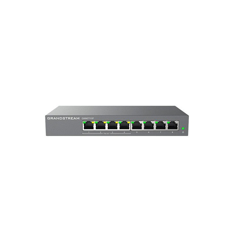 GWN7711P podporuje VLAN pro flexibilní a sofistikovanou segmentaci provozu, QoS pro upřednostňování síťového provozu, IGMP Snooping pro optimalizaci výkonu sítě a komplexní možnosti zabezpečení proti potenciálním útokům. GWN7711P lze snadno spravovat prostřednictvím místního webového uživatelského rozhraní a cloudu pomocí systému správy zařízení Grandstream (GDMS). Díky komplexní sadě přizpůsobitelných přepínacích funkcí, dostupnému pasivnímu PoE režimu 24V DC a snadné správě cloudu jsou řady GWN7711(P) ideálními spravovanými síťovými přepínači pro malá až středně velká nasazení. GWN7711P poskytuje 4 porty PoE pro inteligentní dynamický výstup PoE pro napájení IP telefonů, IP kamer, přístupových bodů Wi-Fi a dalších koncových bodů PoE. Tento model s podporou PoE může také podporovat 24V DC pasivní režim PoE-out.