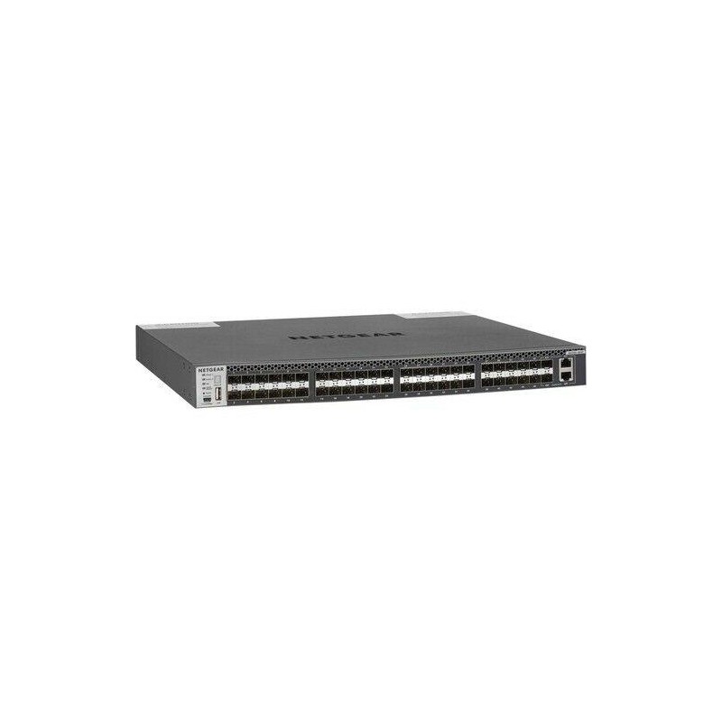 XSM4348FS-100NES - Stohovatelný Managed Switch se 48x SFP+ 10Gb porty FUNKCE - 48portový 10GBASE-X (SFP +) a 2portový 10GBASE-T (RJ45) (sdílený) - Porty Mini-USB a RJ45 RS232 a úložný port USB- Neblokující struktura 960 Gb/s napříč 48 porty - L3 funkce a stohování non-stop forwarding (NSF) - Nízká akustika (42,4 dB při 25 °C / 77 °F) TECHNICKÉ VLASTNOSTI Form factor: 1U rack Přepínací kapacita: 960 Gbps PSU: Modulární dvou pozicový; včetně 1 napájecího zdroje: APS250W Ventilátory: Pevné; 42,04dB Management: Ethernet: Out-of-band 1G port; Console: RJ45 RS232, Mini-USB; Úložiště: USB MAC / ARP - NDP: 128K MAC; 8K ARP / NDP Propustnost: 714 Mpps Paketová vyrovnávací paměť: 56 Mb CPU: 800 Mhz, 1 GB RAM, 256 MB Flash VLAN: 4K VLAN 10G porty: 48 MTBF: 75 let při 25 °C okolní teploty PTPv2: Ne Hmotnost: 5,86 kg Spotřeba energie: 152,4 W OBSAH BALENÍ - 1x switch M4300-48XF - 1x napájecí zdroj APS250W - 2x krátké držáky a šrouby pro montáž do racku
