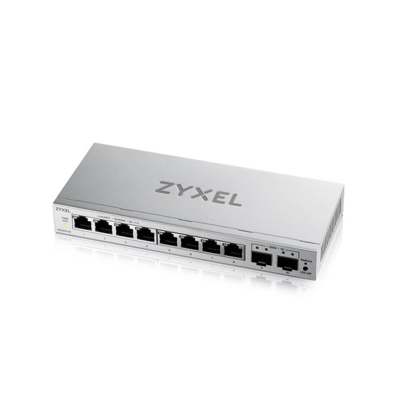 * 10 portů celkem – 8× GbE RJ-45, 2× Gigabit SFP