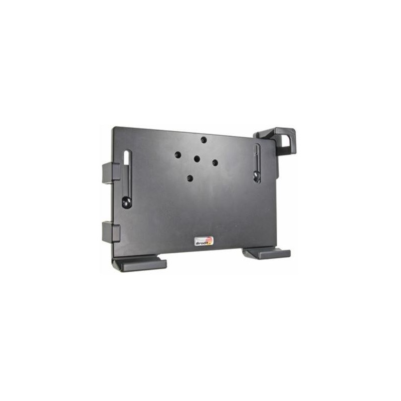Držák je velmi pevný, tablet se v něm neklepe a nevibruje. Držák má kloub, díky kterému může být tablet kdykoliv jednoduše natočen na šířku nebo na výšku nebo naklopen. Držák se upevňuje na Brodit konzoli na hlavovou opěrku.