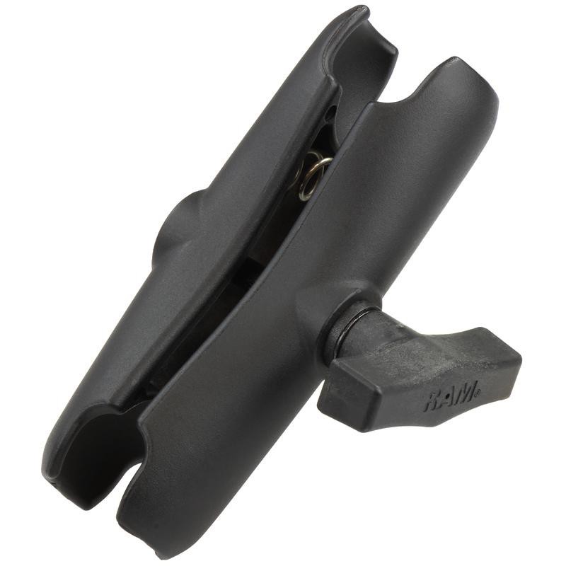 RAM-201U rameno se svorkami na obou koncích. Pružina a utahovací šroub na rameni umožňuje rychlé a velmi pevné připevnění na 1,5“ čepy.