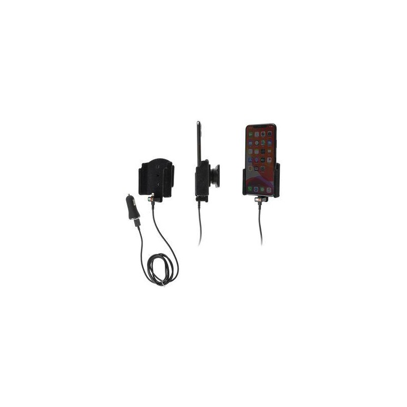 Držák na telefon Apple iPhone 11 Pro Max má vestavěné nabíjení z cigaretového zapalovač (CL 12V) nebo z USB a je určen pro telefon bez pouzdra. Držák je velmi pevný, telefon se v něm neklepe a nevibruje. Držák má kloub, díky kterému může být mobilní telefon kdykoliv jednoduše natočen na šířku nebo na výšku nebo naklopen. Držák se upevňuje na Brodit ProClip.