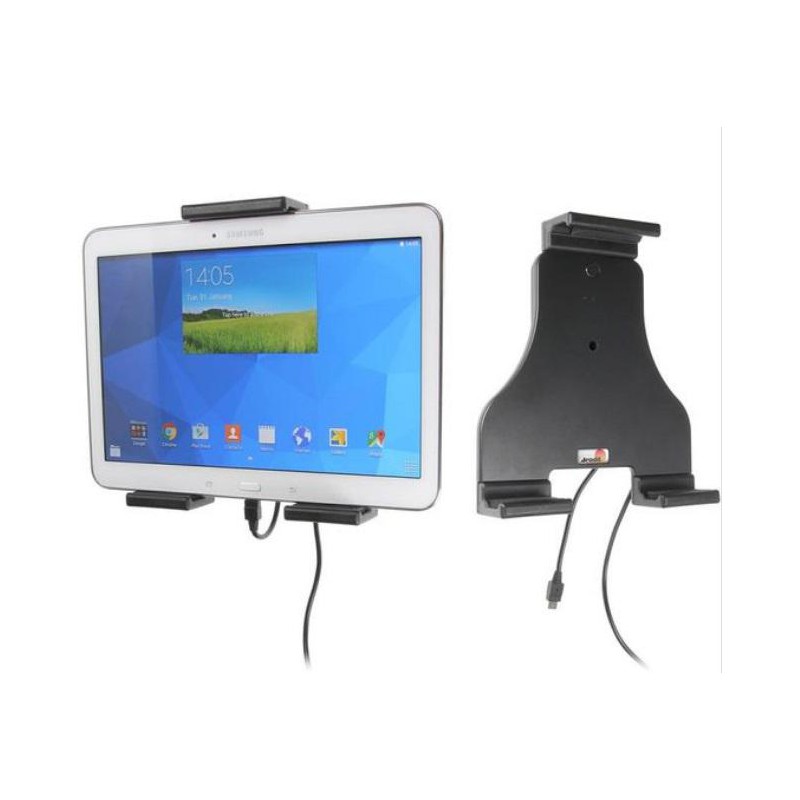 Držák je velmi pevný, tablet se v něm neklepe a nevibruje. Držák má kloub, díky kterému může být tablet kdykoliv jednoduše natočen na šířku nebo na výšku nebo naklopen. Držák se upevňuje na Brodit konzoli na hlavovou opěrku.