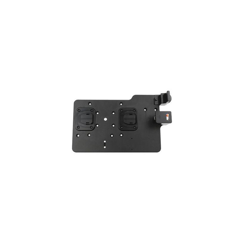 Pro uchycení zařízení v odolném pouzdru má držák zvýšené montážní body, které umožňují větší stabilitu zařízení. Použitá rychlospojka umožňuje snadné vložení a vyjímání jednou rukou.