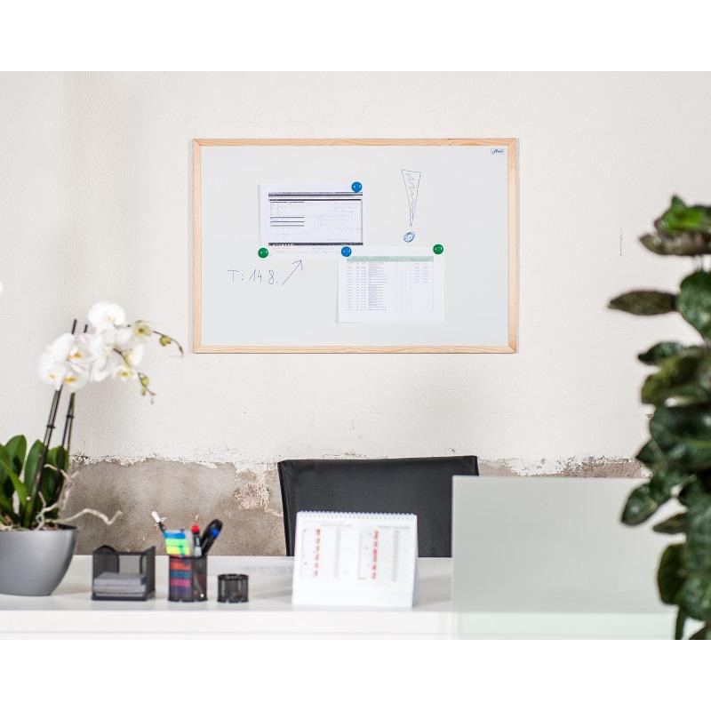 Magnetická a současně popisovací tabule s bílým lakovaným emailovým povrchem se nekroutí díky velmi kvalitnímu dřevěnému rámu! Tabule neslouží pouze jako magnetická, ale je možné na ni psát speciálním stíratelným fixem.