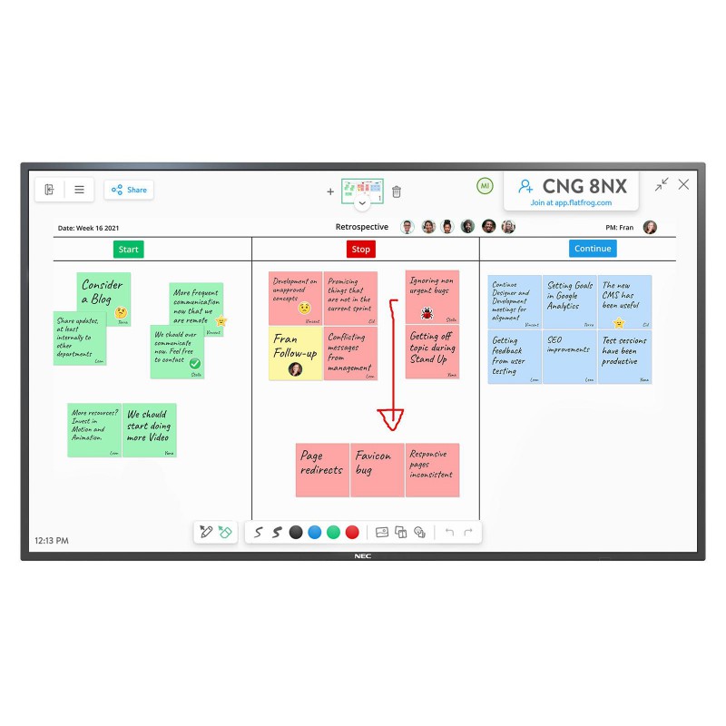 Moderní konferenční prostory zvyšují požadavek po pokrokových dotykových technologiích s inovativním designem. Na podporu interaktivních konferencí přináší dotyková tabule NEC InGlassTM společně s citlivým pasivním perem prvotřídní psaní na digitální plátno s minimálním časovým zpožděním, které připomíná psaní na papír. Díky štíhlému designu rámu se tato technologie snadno integruje do moderních prostorů.