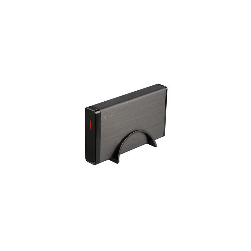 Pevná hliníková konstrukce rámečku zajišťuje účinný odvod tepla a ochranu pevného disku. Součástí balení je i stojan, rámeček tedy můžete mít postaven ve vertikální poloze a šetřit místo na pracovním stole.