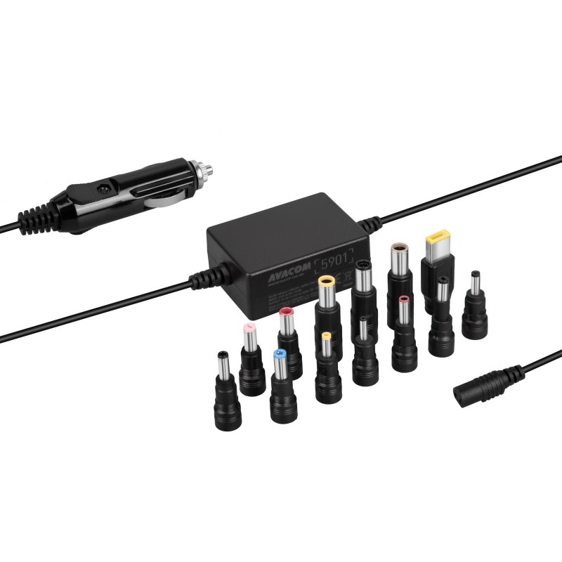 AVACOM QuickTIP-CAR 65W je univerzální nabíjecí adaptér pro notebooky, určený pro váš vůz. Dokáže se svými 13 různými konektory napájet drtivou většinu vyráběných notebooků oblíbených značek Acer, Asus, Compaq, Dell, Fujitsu/Siemens, Gateway, HP, IBM, LG, Lenovo, MSI, Packard Bell, Samsung, Sony, Toshiba, eMachines i jiných zařízení, vyžadujících pravidelné napájení ze sítě. 12V/24V zásuvka pro zapalovač umožňujě použití v osobních i nákladních vozech.