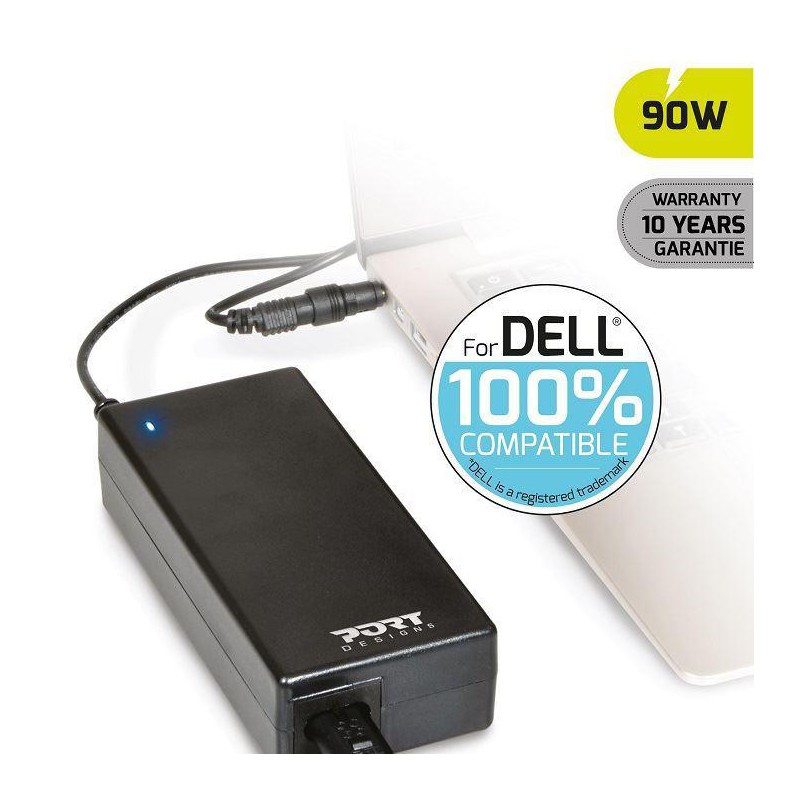 Má adaptabilní napájecí výkon až do výše 90W. Dále nabízí vestavěnou ochranu proti přepětí a dokáže uchránit zařízení před poškozením. Pro co největší univerzálnost nabízí 2 druhy DELL koncovek.