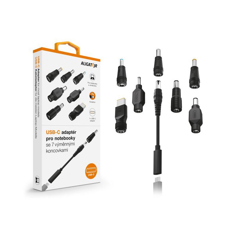 Tento adaptér je ideálním pomocníkem pro dobíjení velké části notebooků a ultrabooků. Pečlivě jsme si dali záležet při výběru typů konektorů. Vyberte si jeden ze 7 přiložených konektorů (koncovek), který bude vhodný pro nabíjení Vašeho zařízení.
