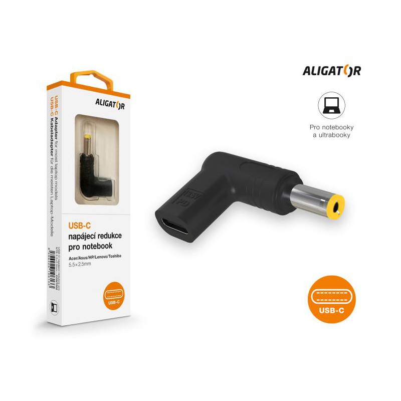 USB-C napájecí redukce 5,5 x 2,5 mm pro notebooky Acer, Asus, HP, Lenovo a Toshiba řady ALIGATOR POWER.